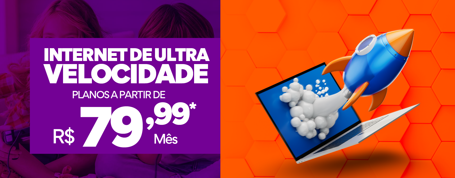 *Valores pelos 3 primeiros meses. Após o período: 400MB - R$ 99,99 | 600MB - R$ 119,99 | 800MB - R$ 139,99 | 1GB - R$ 159,99